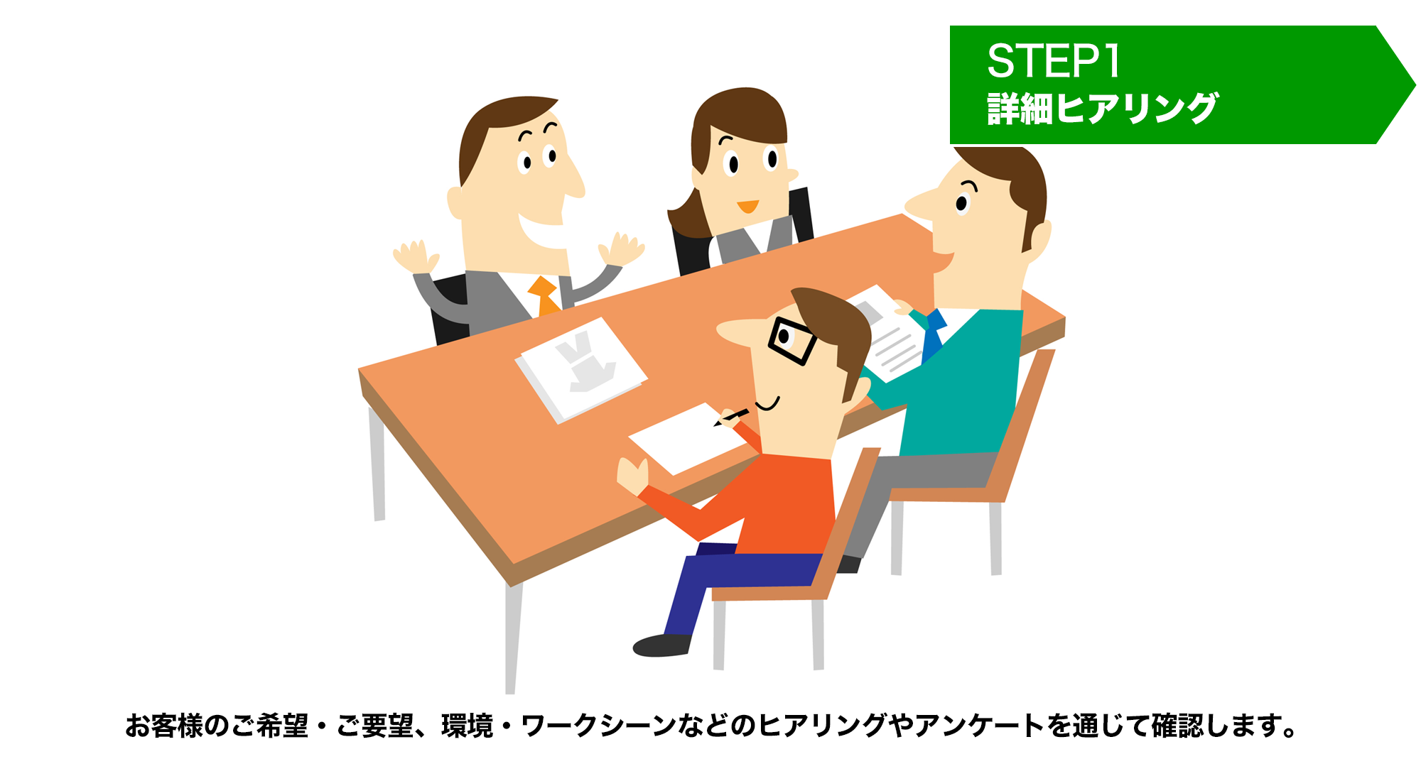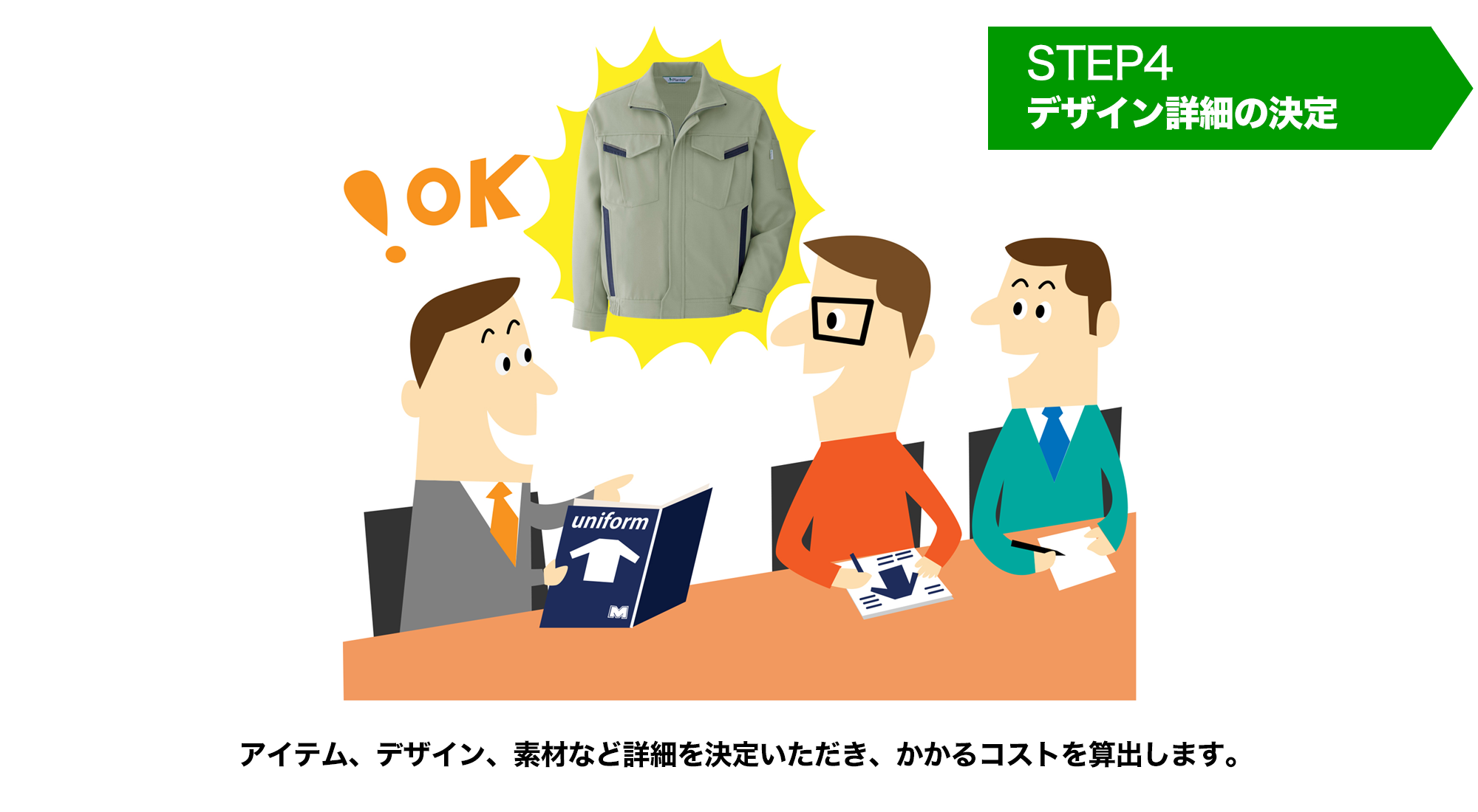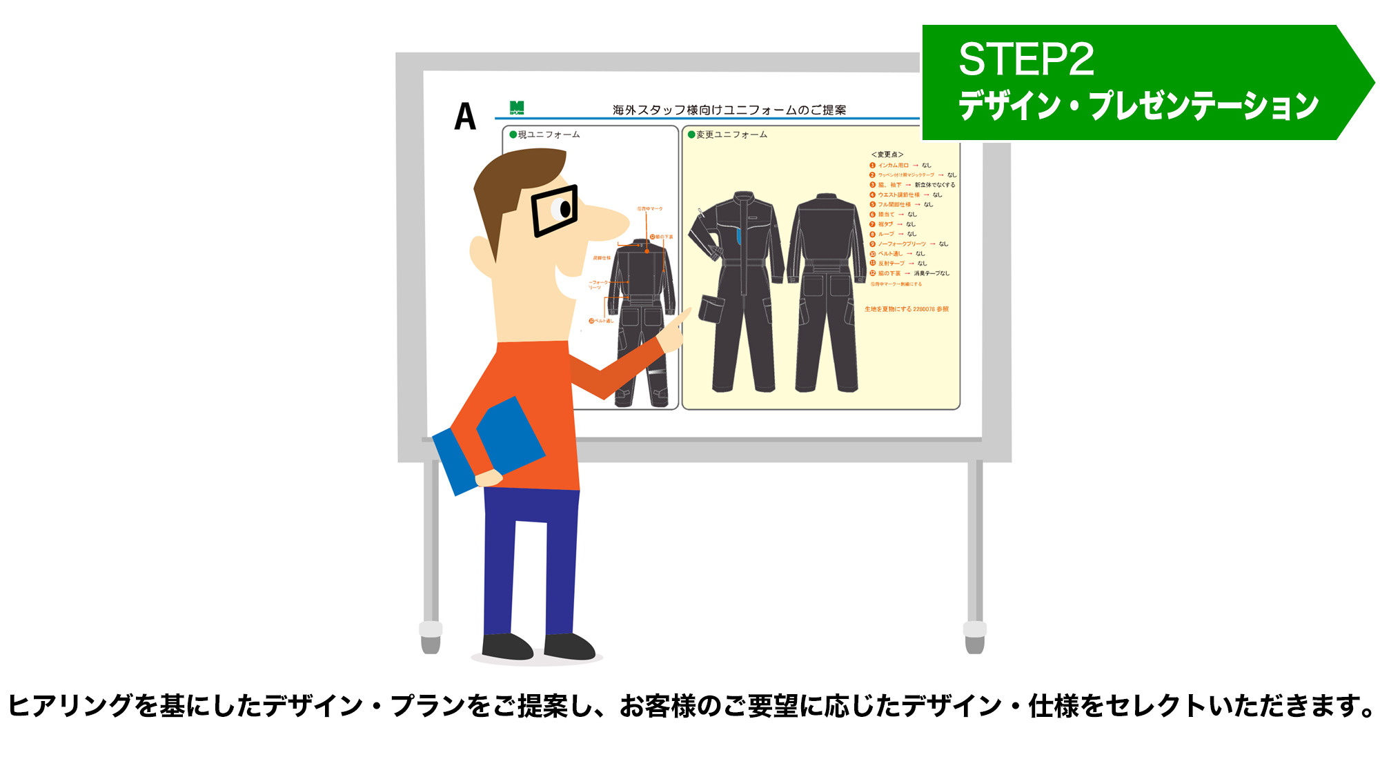 ミドリ安全では、お客様のご要望をお伺いした後、経験豊富な専任スタッフが、あらゆる要素をきめ細かく分析します。そして素材やデザイン、カラーの細部にまでこだわったオリジナリティあふれるユニフォームをご提案します。 企業のイメージアップを実現するオリジナルユニフォームで、ワークシーンに快適向上宣言!