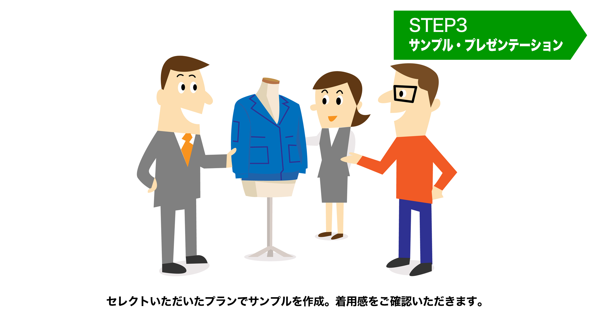 オリジナルユニフォームが完成するまでを、わかりやすくご紹介します。営業担当がお客様のお希望を詳しくお伺いした上で、お客様に合ったプランをご提案いたします。デザインプレゼンテーションやお見積もりなどのご提案は無料で承ります。ぜひ、お気軽にお問い合わせください。